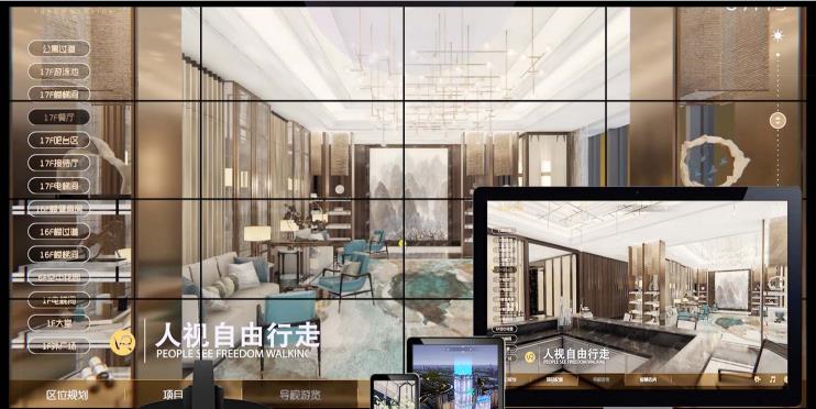 綜合利用虛擬仿真、投影、三維動畫、3D影視互動多媒體、互聯網等數字、網絡技術來展示房地產產品的新鮮形式,通過與消費者的深入互動,以到位的形象展示及體驗營銷向消費者傳達良好的企業形象、品牌形象,產品信息,達到有效拉動銷售的目的。融合了三維仿真技術、沙盤控制技術、大屏幕仿真技術、互動觸控等多學科技術,根據地產客戶的展示需求讓科技和藝術牽手詮釋地產魅力。